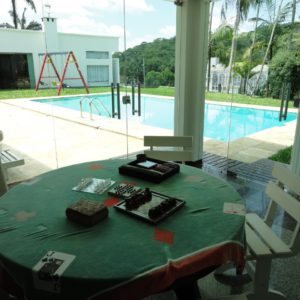 A casa conta com 03 cozinhas equipadas, 03 lareiras e 04 churrasqueiras, suíte master com hidro, closet, sauna e lareira. Quarto de empregada com banheiro e garagem.